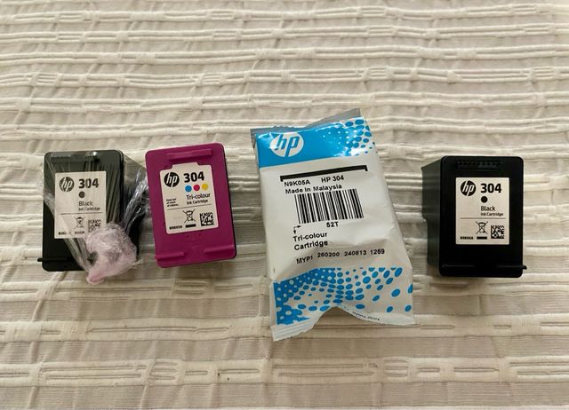 Lote de 4 cartuchos varios usos. Hay dos de tinta negra (uno abierto pero sin usar) y hay dos de color (uno nuevo sin abrir). Los vendo por cambio de impresora