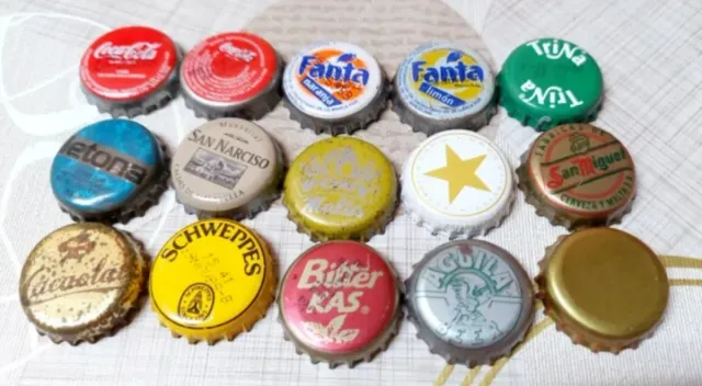 Colección de chapas de botellas de refrescos y cervezas de los años 90.