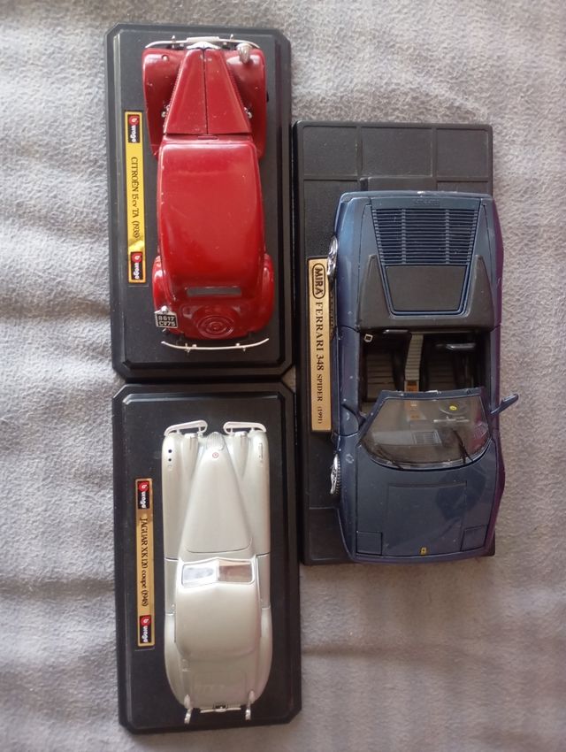 Detalles del productoConjunto de tres coches a escala de las marcas Burago y Mira al Citroën y jaguar les faltan un faro
