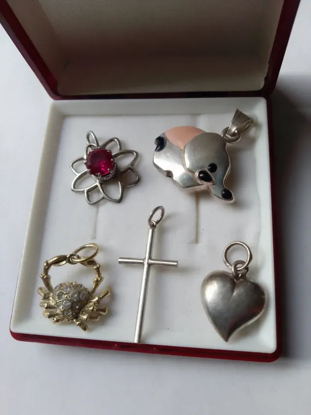 Lote Colgantes Plata Corazón, Cruz, Cangrejo