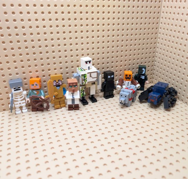 Detalles del productoLote con figuras de videojuegos. Minecraft. Se vende lote que incluye 10 modelos diferentes compatibles tipo lego. Son figuras compatibles, no son de la marca lego. Incluye Alex, Steve, lobo, Zombie, Araña, Golem de Hierro, Aldeano, Golem de nieve, enderman, Enderman. Palabras clave:. Muñecos, juguetes, figuras colección, merch, personajes, juguete coleccionable, regalos para gamers, merchandising, juguetes para niños, figuras articuladas, Steve, Creeper, Enderman, villager, zombies, regalos geek, accesorios, figuras miniatura, Minecraft de acción, minifiguras