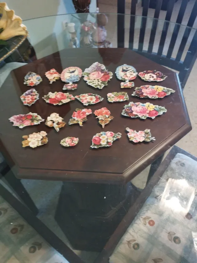 Conjunto de cromos antiguos con motivos florales. - Diseños variados de flores. - Ideal para coleccionistas.
