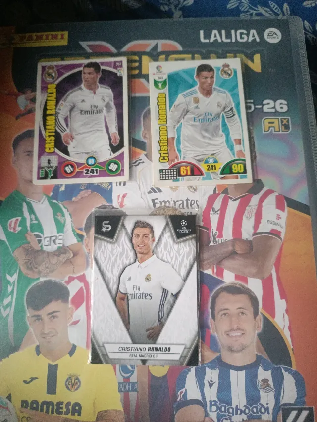 Detalles del productoLote de cromos de Cristiano Ronaldo de La Liga.