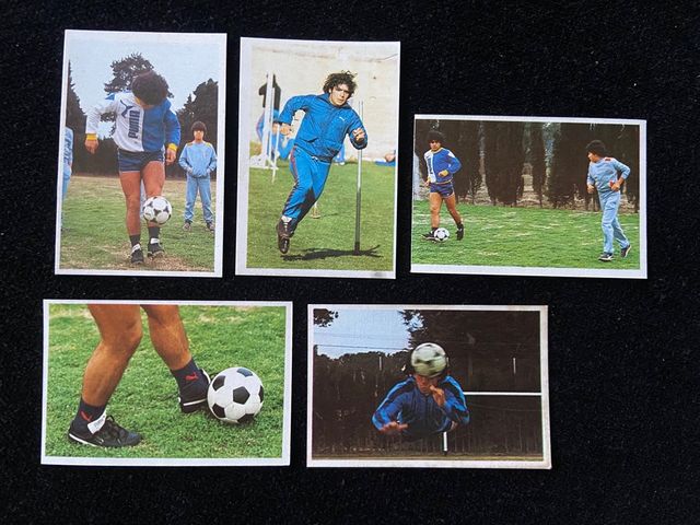 Detalles del productolote de 5 cromos de carton de la coleccion de cromo esport de maradona sus driblings sus goles. sin pegar