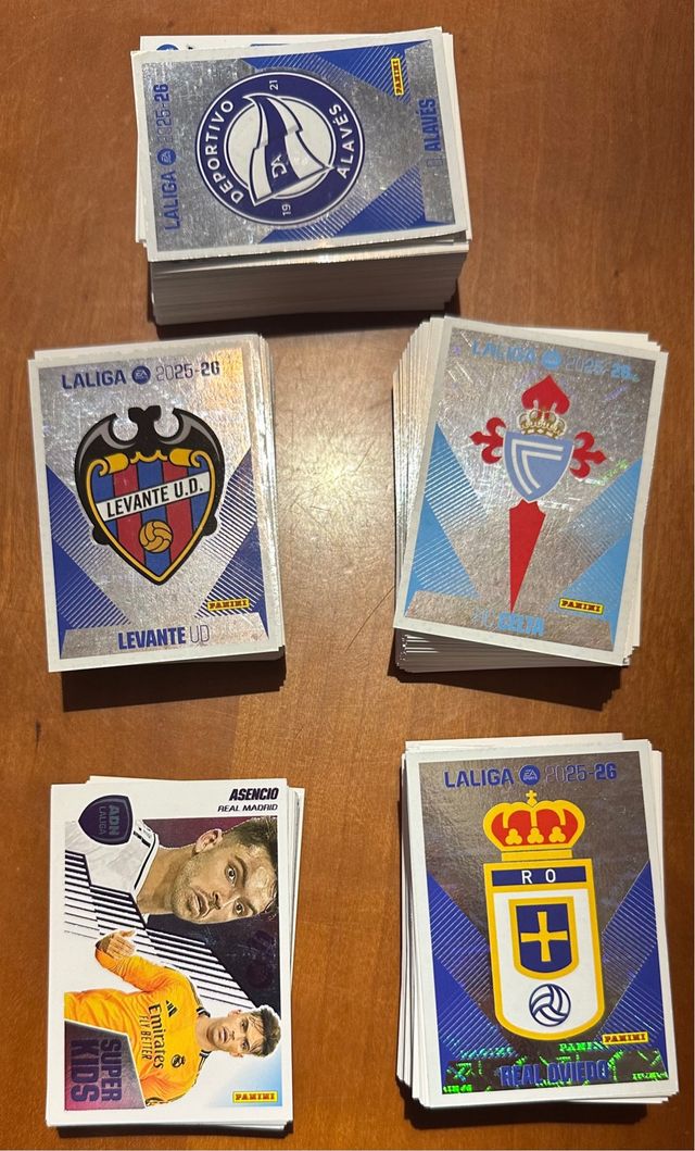 Lote de cromos de LaLiga temporada 2025-26. Cromos de la colección Panini. 485 cromos sin repetir básicos y alguno de 2a y 3a edición