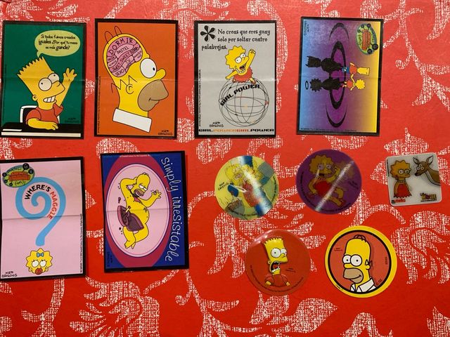 - Incluye varios cromos con ilustraciones de Bart, Homer y Lisa. De bimbo la pandilla.