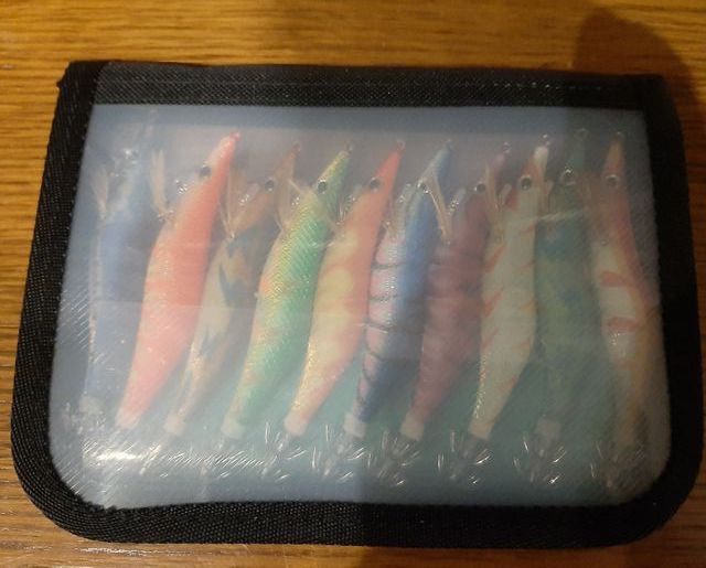 Detalles del productoLote de 10 anzuelos de pesca sin estrenar. Para cefalópodos. Se iluminan en la oscuridad. Disponibles 2 unidades. Precio no negociable.