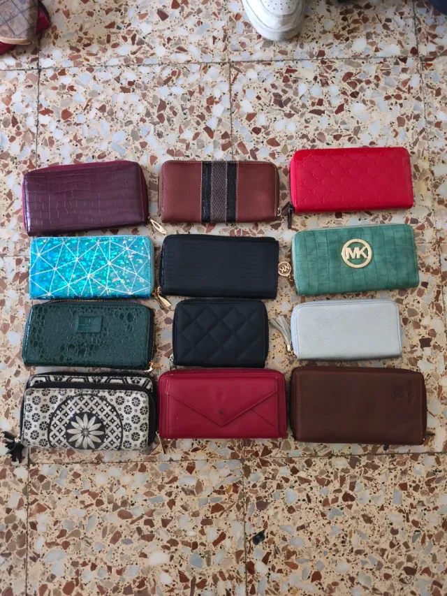 Detalles del productoConjunto de doce monederos de diferentes estilos y colores.