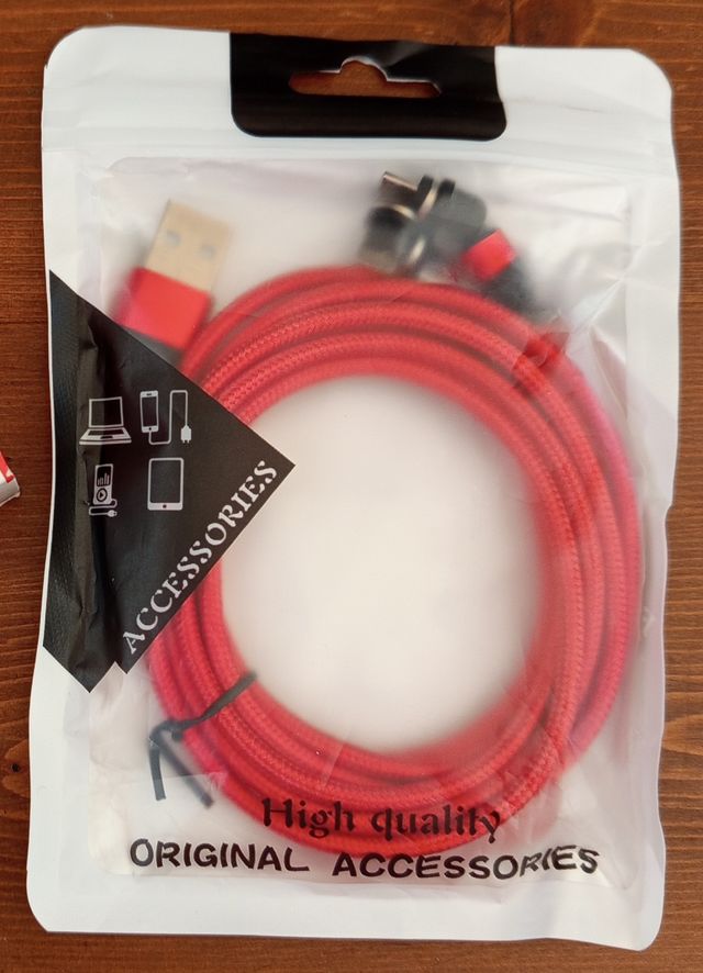 Lote de 2 Cables cargador magnético para teléfono, giro de 360° en color rojo de 2 metros, con LED, 3 en 1 tipo C/Micro/8 pin.