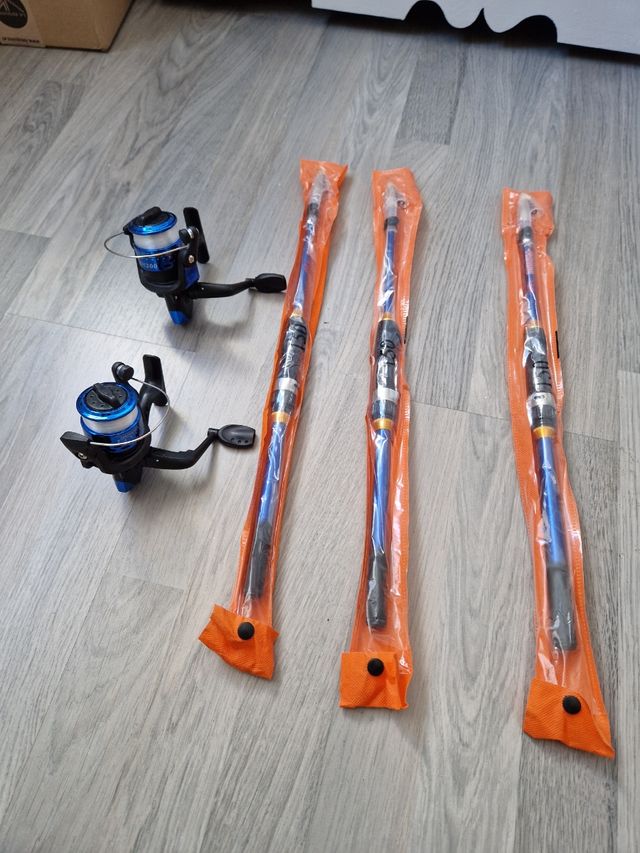 lote de 3 cañas de pescar plegables 1.50 m nuevas