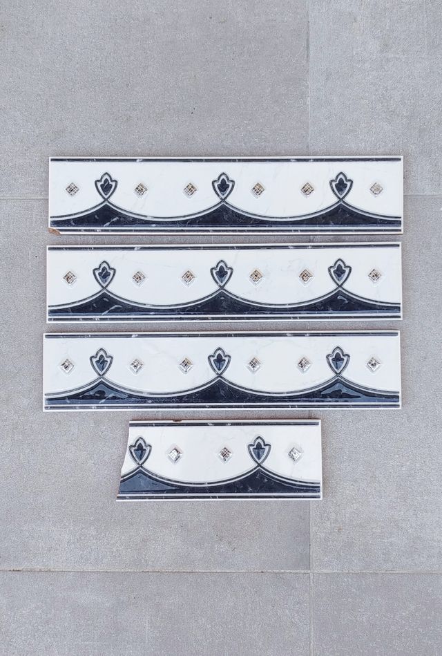 Detalles del productoDe 7 x 31,5 cm. 2 en perfecto estado, uno con una esquinita un poco rota pero todavía se puede usar y otro roto. Hechos en España. Muy bonitos con color plateado y azul oscuro.