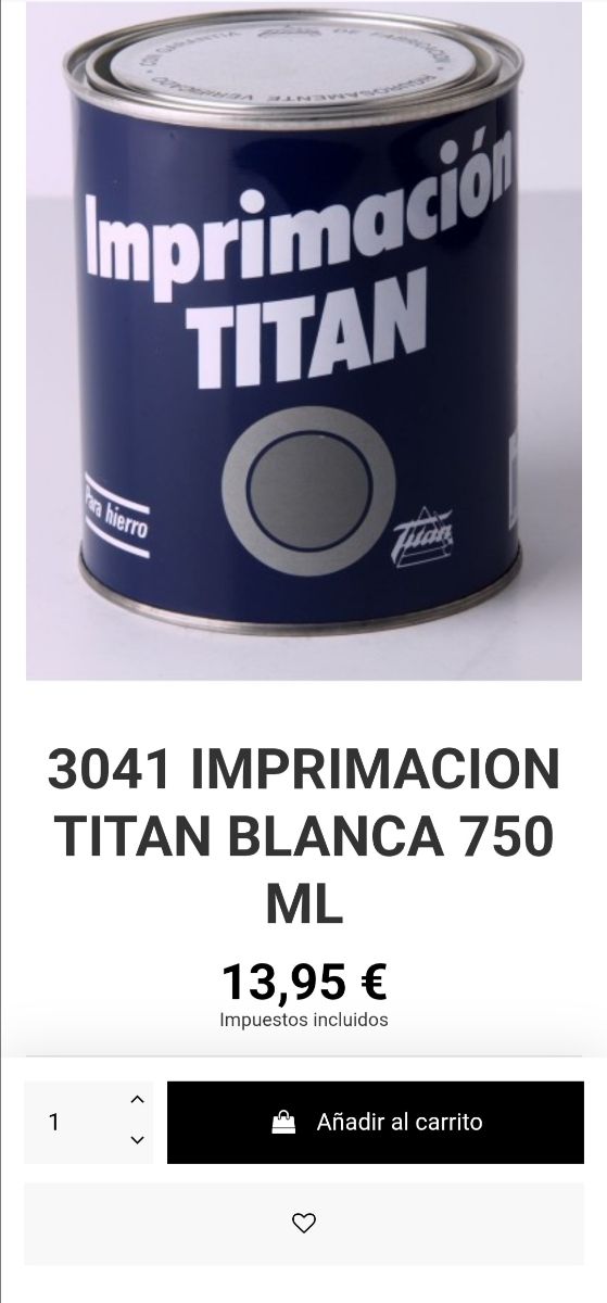 Detalles del productoLote de 4 envases de Imprimación Titan Blanca para hierro, en perfecto estado.