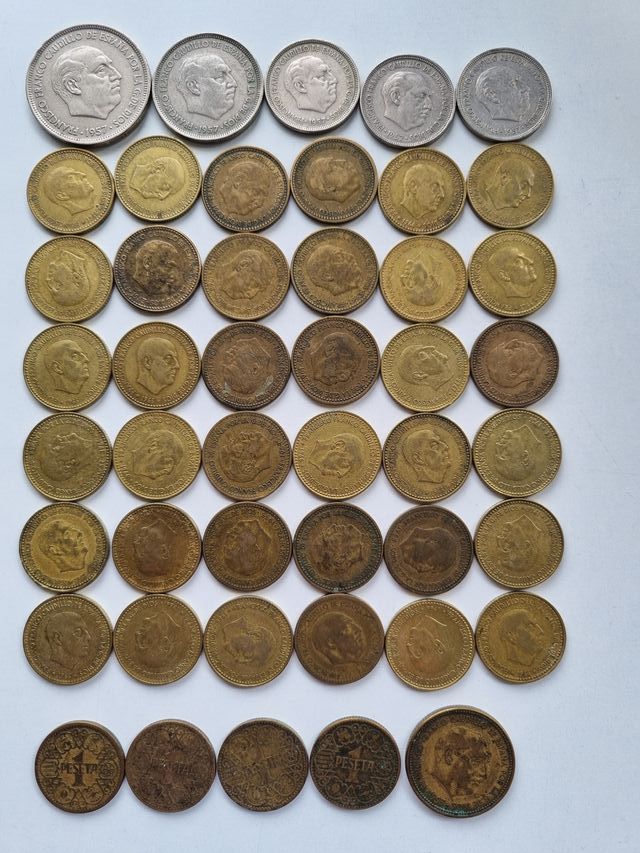 Vendo este lote de monedas de 50, 25, 5, 1 peseta y 2,50 pesetas, de Franco. Desde el año 1944. Escucho ofertas. Tengo más monedas en venta.