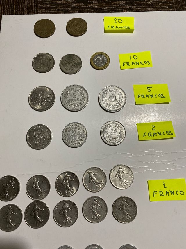 Se ofrece un lote de 84 monedas francos franceses de cobre, niquel y Aluminio con años dispares entre 1924 hasta 1987