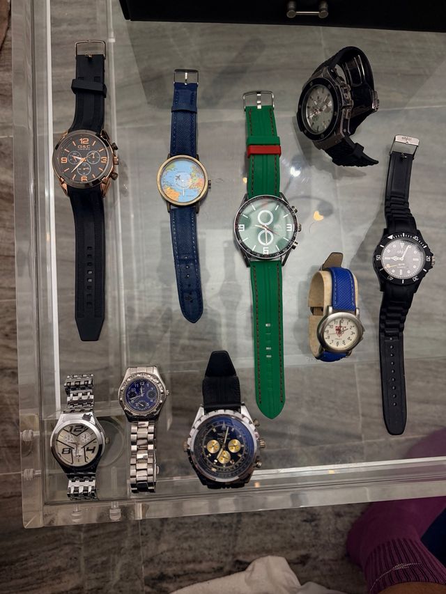 Conjunto de nueve relojes para hombre con diferentes diseños y correas.