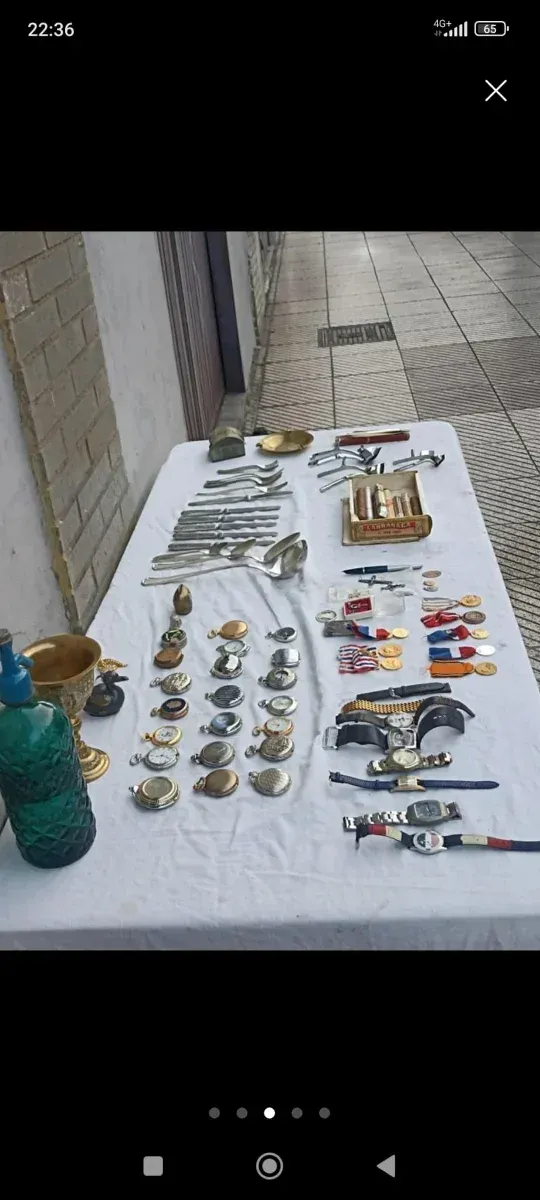 Lote de antigüedades: relojes, cubiertos y más