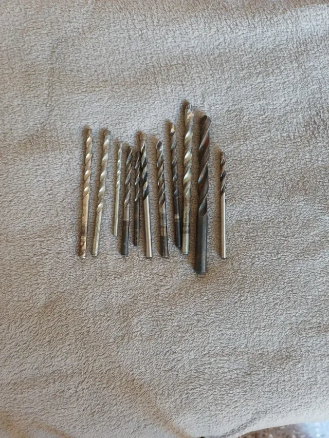 Conjunto variado de brocas para taladro, de diferentes tamaños y materiales. - Brocas de metal. - Brocas para madera. - Variedad de diámetros.