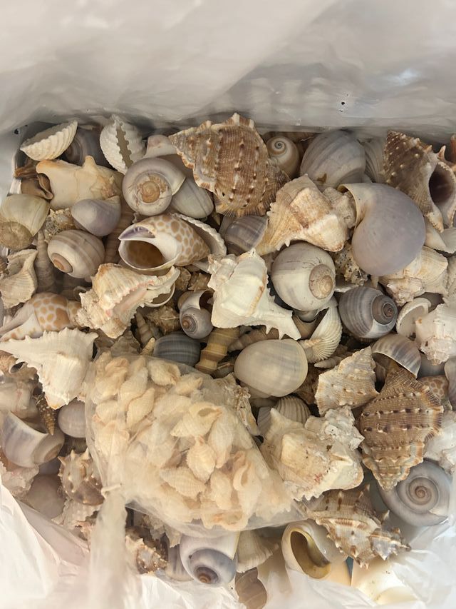 Variedad de caracolas marinas, perfectas para coleccionismo o decoración. A granel, 4kg aprox - Diversas formas y tamaños. - Tonos naturales y variados.