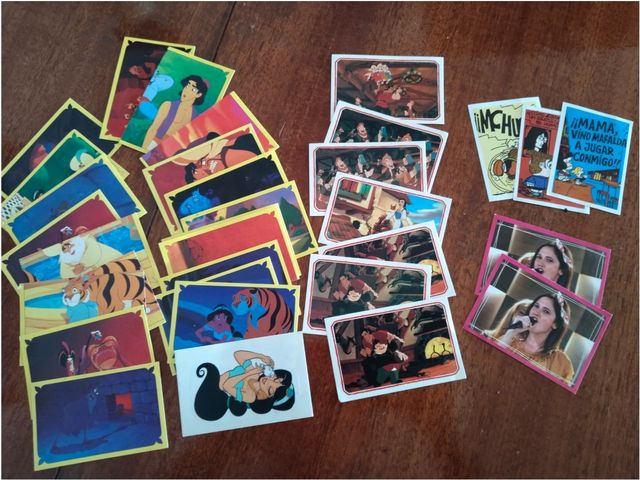 varios cromos de Aladdin, la bella y la bestia, Violetta, y Mafalda años 80 y 90