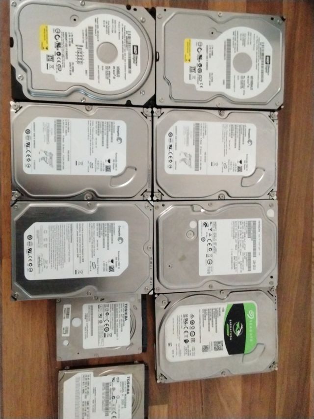 Discos Duros Varios -WD 2x160Gb -Seagate 2x160Gb, 1x500Gb y 1x1Tb -Toshiba 1x500Gb y 1x85Gb -Hitachi 320Gb