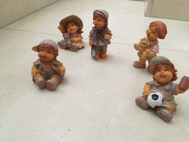 Lote de 15 figuras de resina surtidas (niñas con sombrero y niños con gorra). Se vende el lote completo por 7€. No se venden unidades sueltas.