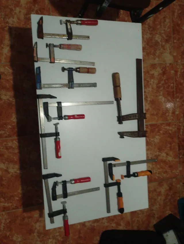 Conjunto de gatos de carpintería de diferentes tamaños y tipos. - Gatos de apriete rápido. - Gatos de barra. - Gatos de tornillo. - Mangos de madera y goma. Nose envía recogida en persona