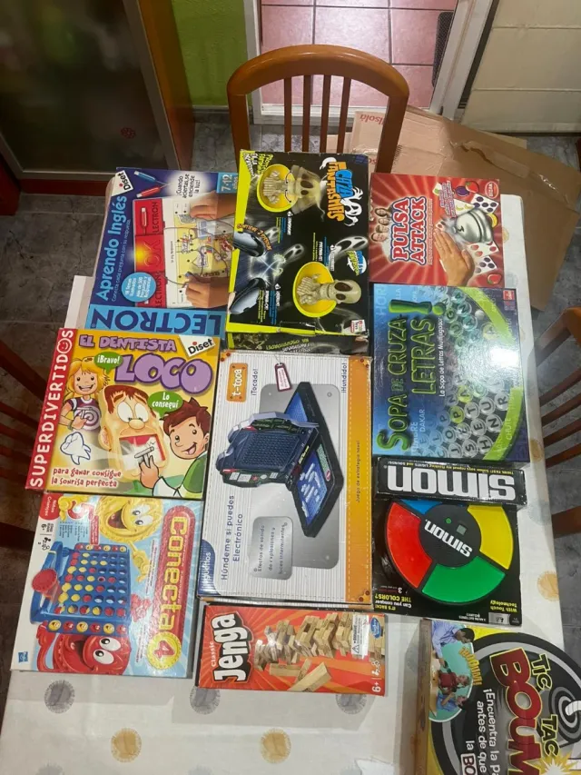 Detalles del productoLote variado de juegos de mesa, ideal para niños y toda la familia. Incluye títulos como Connecta 4, Jenga, Simon y más.