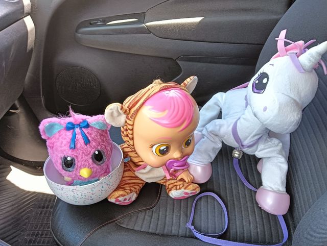 Unicornio camina con la correa, bebé llorón ( tiene sonidos ) , el Hatchimals transmite sonido y luz