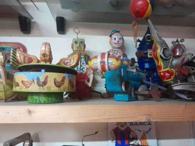 Detalles del productoColección de juguetes antiguos de hojalata y otros materiales.