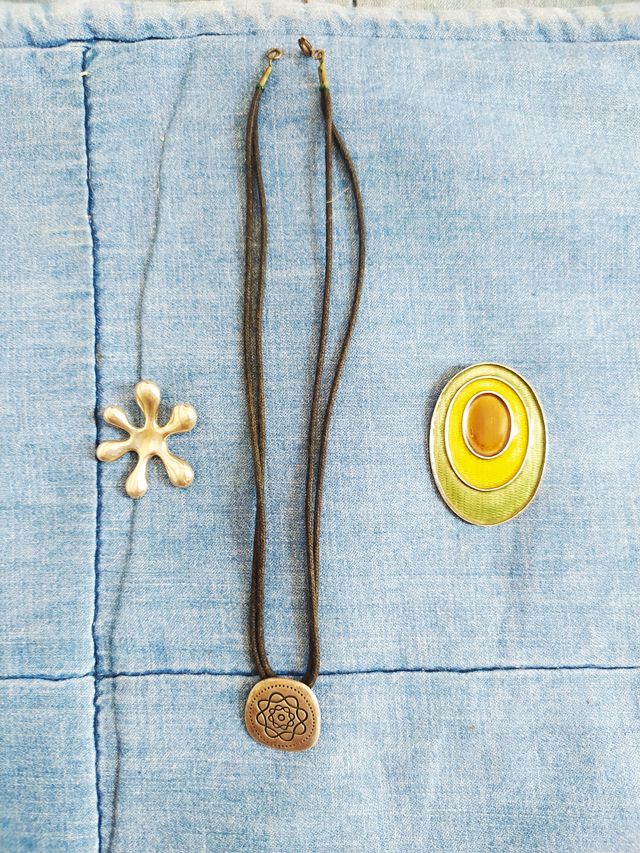 Preciosos colgantes de diseño artesano gallego en plata de ley y esmalte. Quedan muy bonitos puestos. Uno de ellos lleva su cordón. Al ser de plata les vendría bien limpieza. Muy originales y exclusivos.