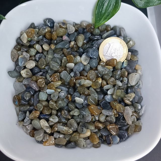 Minerales chip de Labradorita ideal para decoración y meditación Forma irregular Peso 205 gramos Estado pulido-natural Multicolor natural Se hace envío por correos