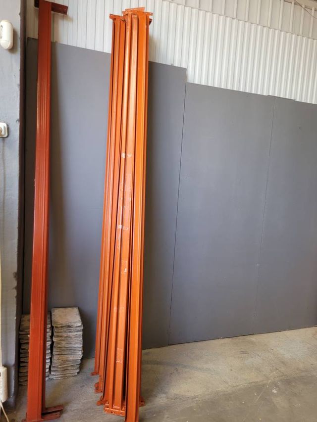 Lote compuesto por un total de dieciocho largueros de la marca Mecalux de color naranja. Se trata de un lote o un conjunto formado por dieciocho largueros que tienen una medida de más de dos metros cada uno. Son unos largueros muy resistentes que se pueden utilizar para cualquier tipo de obra. Como se puede observar en las fotografías se encuentran en buenas condiciones.