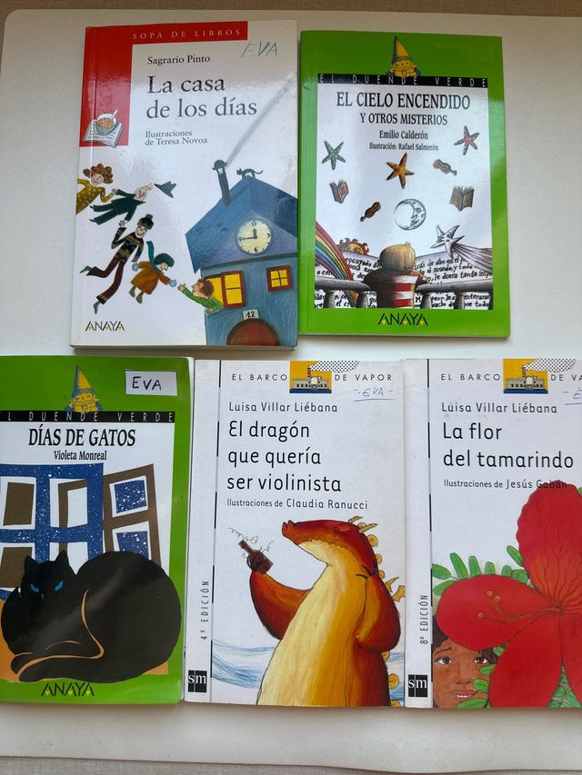 Están como nuevos. La casa de los días El cielo encendido y otros misterios Días de gatos El dragón que quería ser violinista La flor del tamarindo