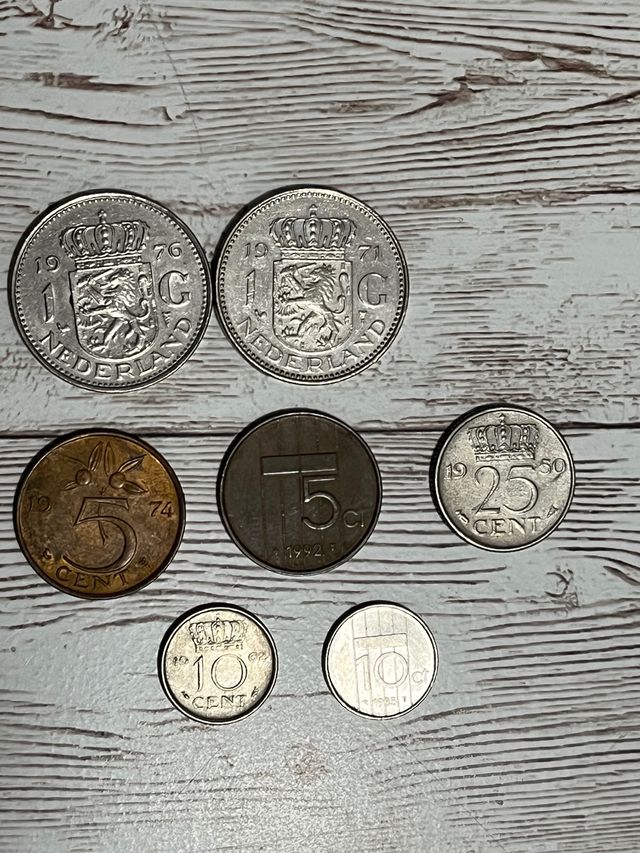 Vendo lote de 7 monedas de colección de Holanda. Distintos valores: 1 gulden, 25, 10 y 5 cent. Distintos estados de conservación.
