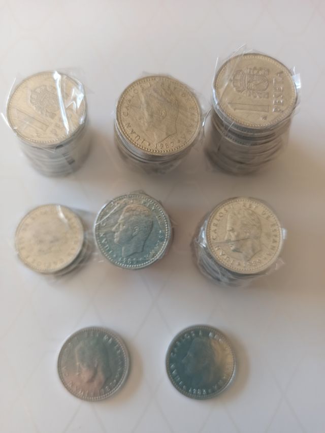 Detalles del producto Monedas de 1 peseta de diferentes años 1 de 1982 -1 de1983 -3 de1984 -8 de1985 -16 de 1986 -19 de1987 -20 de 1988 y 10 de 1989. Medidas del producto