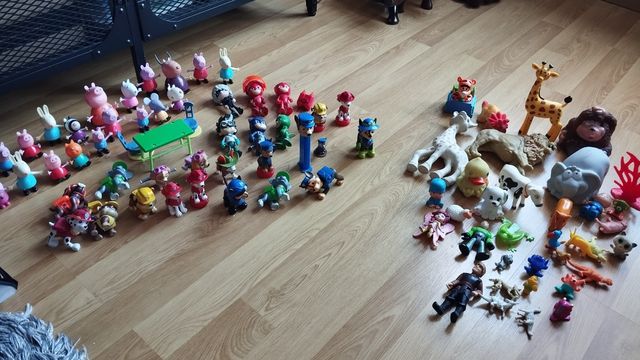 Conjunto de muñecos infantiles de diferentes personajes y series. - Incluye figuras de Peppa Pig, Paw Patrol y otros. - Ideal para coleccionar o jugar.