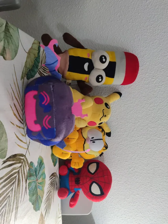 Lote de peluches: Spiderman, Garfield, Pikachu..