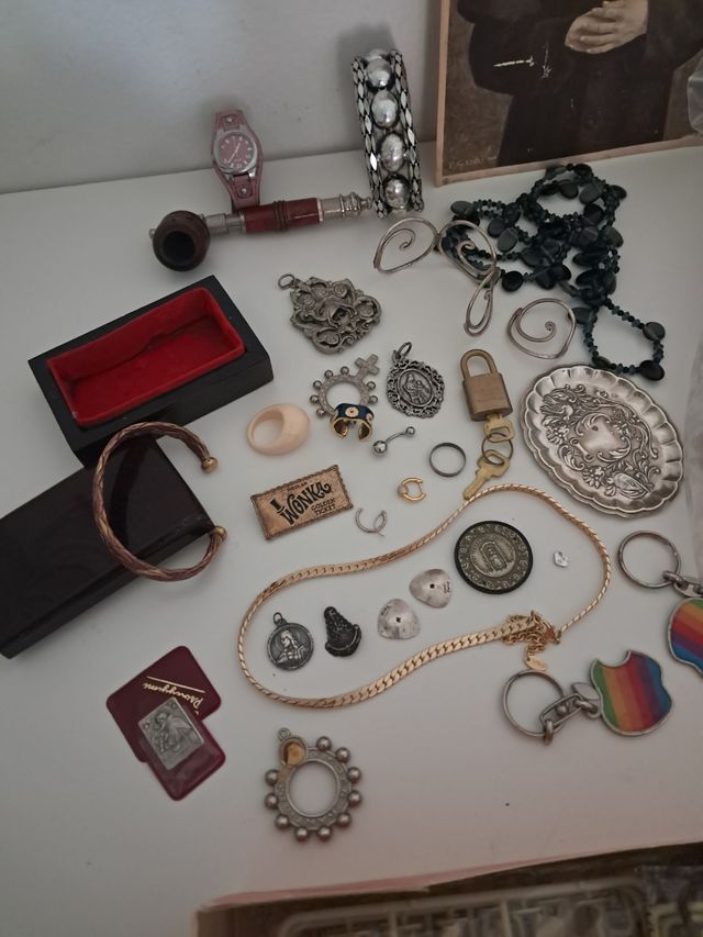 Detalles del productoConjunto de artículos de plata y objetos de colección variados.