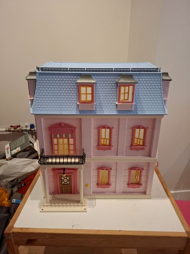Lote de playmobil.Casa de muñecas,2 autocaravanas,ambulancia, nave,furgón de policías,clínica veterinaria, tienda y muchos muñecos.