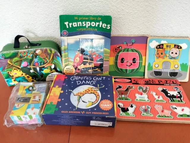 Detalles del productoConjunto de varios puzzles y rompecabezas infantiles, ideales para el entretenimiento y aprendizaje de los más pequeños.