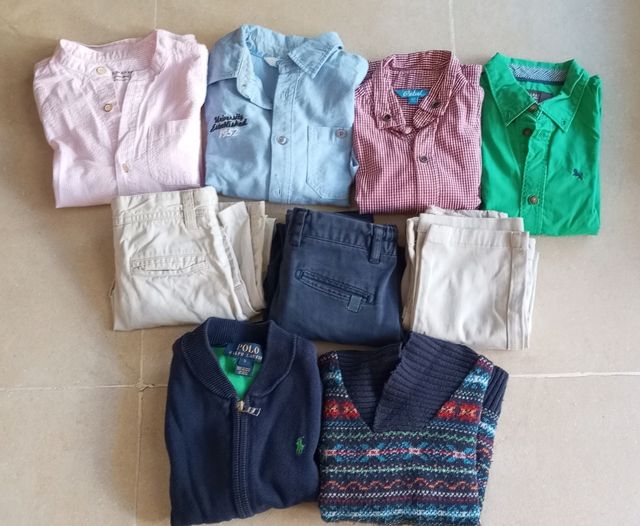 Lote de ropa Contenido: 4 camisas de manga larga, 3 pantalones largos y 2 jerseys. Talla: 4-5 años