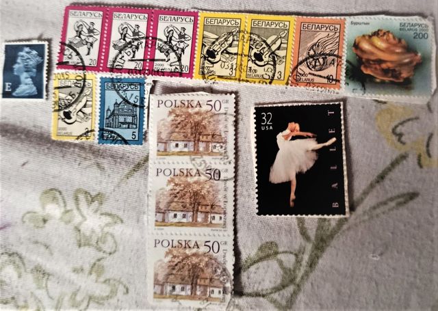 Detalles del productoConjunto de sellos de diferentes países, incluyendo Belarus y Polonia, con diversas ilustraciones.