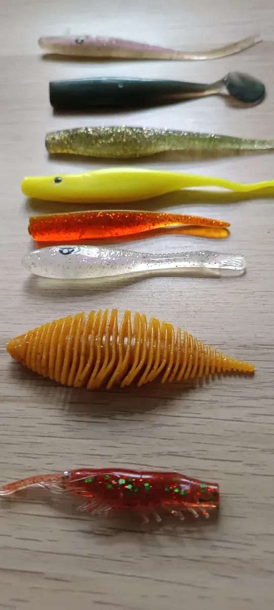 Detalles del productoConjunto variado de 8 señuelos de pesca de diferentes colores y formas.