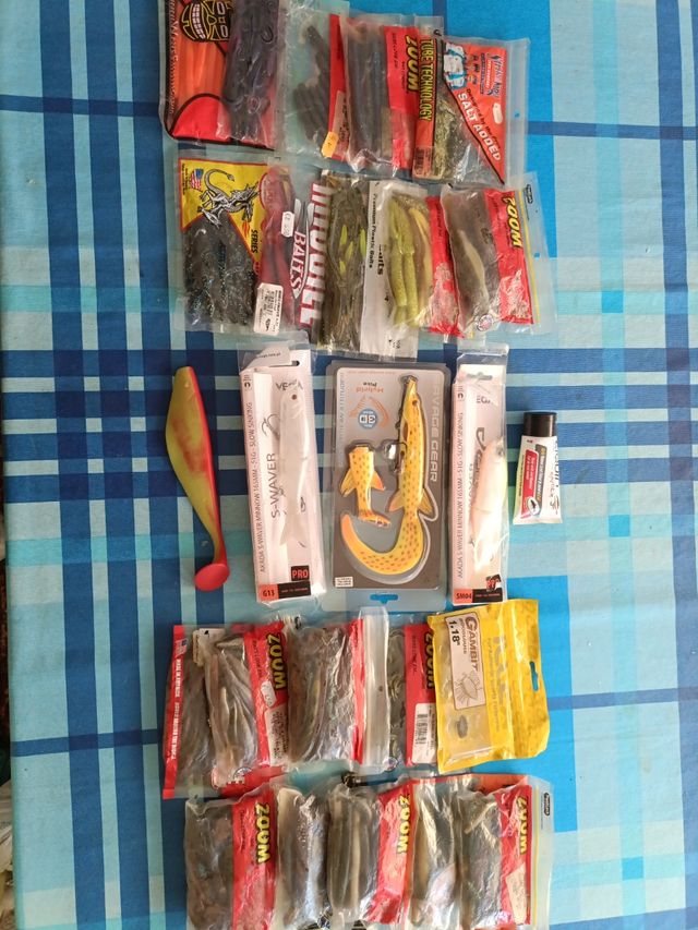 20 bolsas de vinilos algunas sin abrir y otras con muchos más cebos de los que trae la bolsa originalmente