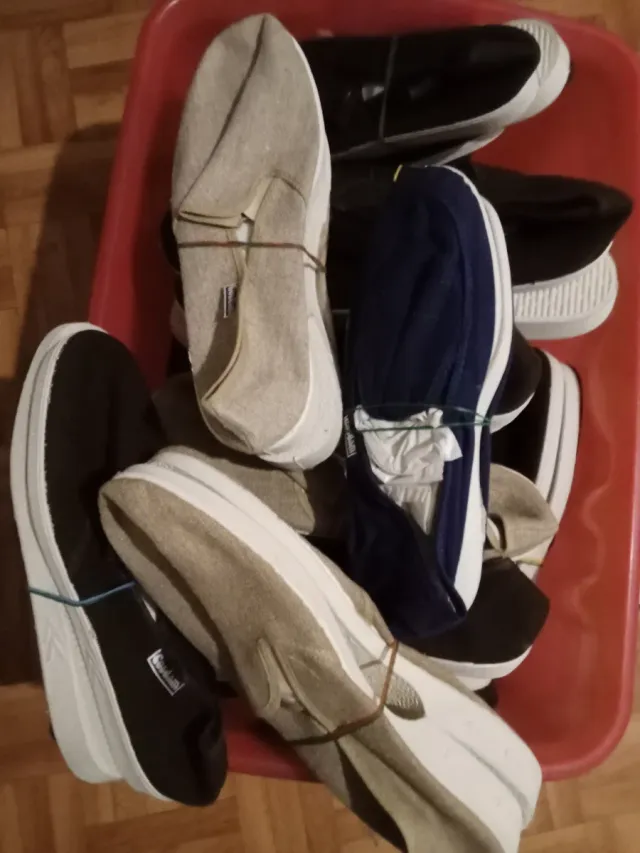 Lote de zapatillas variadas, loneta ideal reventa - Zapatillas de tela. - Suelas blancas. - Colores: negro, azul y beige. Ay sobre 24 pares