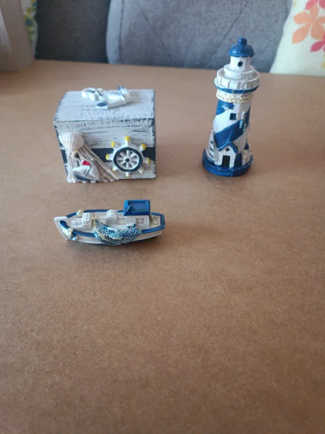 Lote Decoración Marinera: Faro, Barco y Cofre
