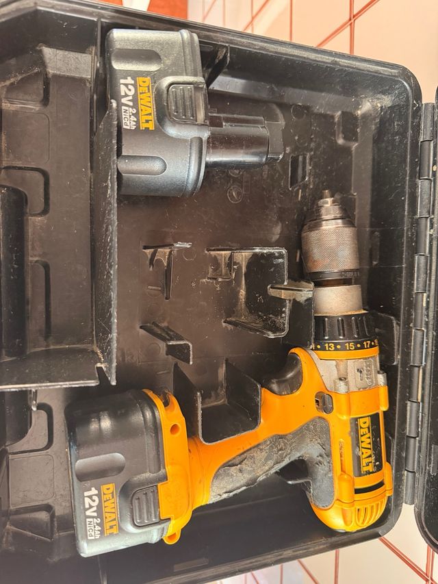 Se vende lote de herramientas Dewalt. - Taladro inalámbrico. - Dos baterías de 12V 2.4Ah NiCd. - Cargador. - Medidor Láser - Aspirador - Foco portátil