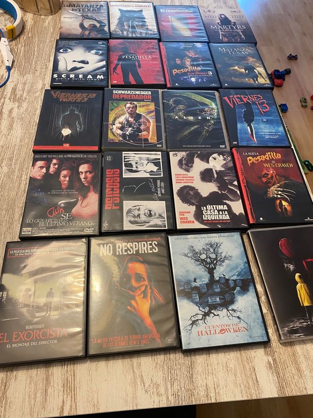 Detalles del productoSe vende lote de peliculas de terror en DVD excepto “Martyrs” blu ray. Son peliculas algunas muy buscadas y antiguas, todas provienen de mi coleccion, no han pasado por mas sitios excepto la ultima casa a la izquierda que es de segunda mano. Se puede vender algun lote por separado y las mas caras se puede mirar de vender en individual. Todas en perfecto estado.