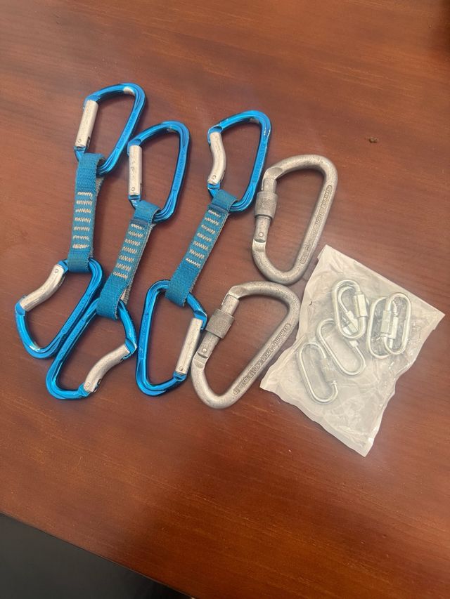 Detalles del productoLote de material de escalada que incluye cintas exprés y mosquetones.