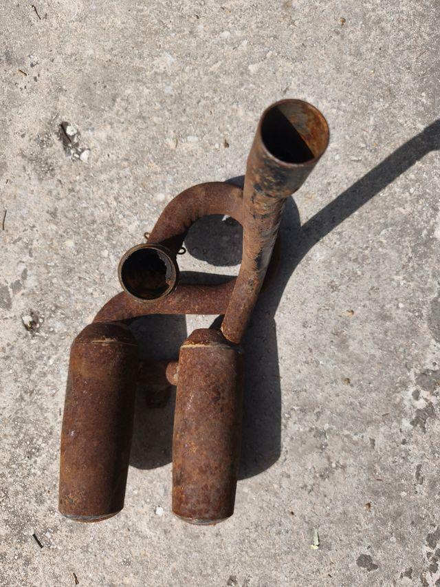 Detalles del productoEscape, depósito con grifo sin tapon ,asiento completo y subchasis trasero con deposito líquido de frenos. trial clasico marca Merlin Dg , el escape aparentemente se aprecia en mal estado pero sólo presenta oxido superficial y solo un pequeño bollo que refleja las fotografías, la funda del asiento presenta un despegado en su parte trasera, todo necesita una limpieza. Precio del lote.